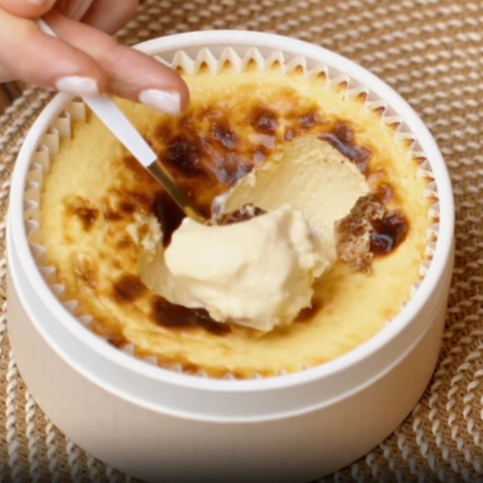 Its delicate biscuit base provides a subtle contrast that perfectly balances the creaminess of the filling without overpowering it. A precise baking process achieves its iconic finish: burnt and caramelized on the outside, silky and soft at the center, with a refined and well-balanced flavor.